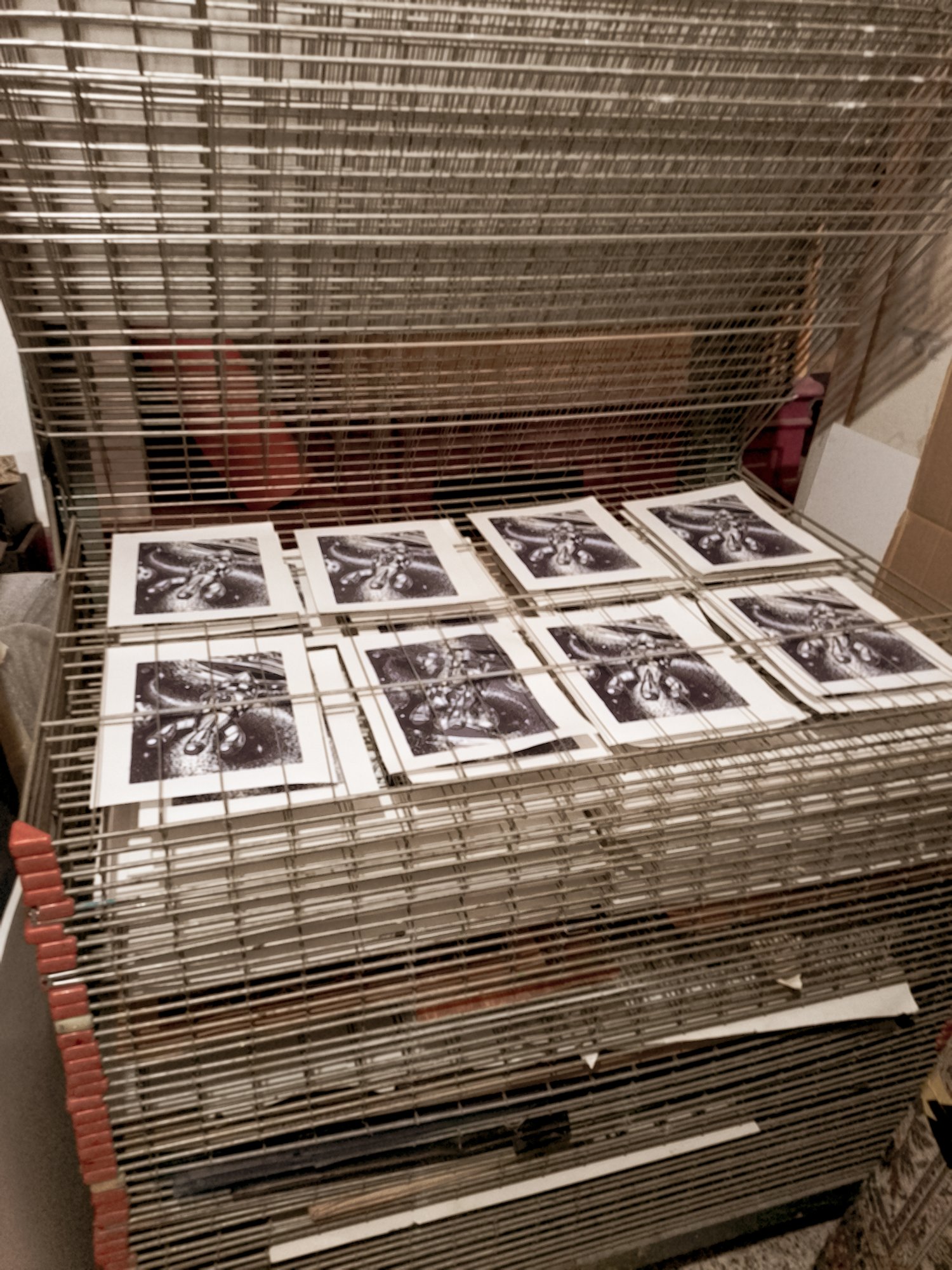 L’encre et le papier pour les tirages d’épreuve pour le trimestre : jusqu’à 3 tirages pour la linogravure et jusqu’à 5 pour la taille-douce. Ensuite une participation est demandée.