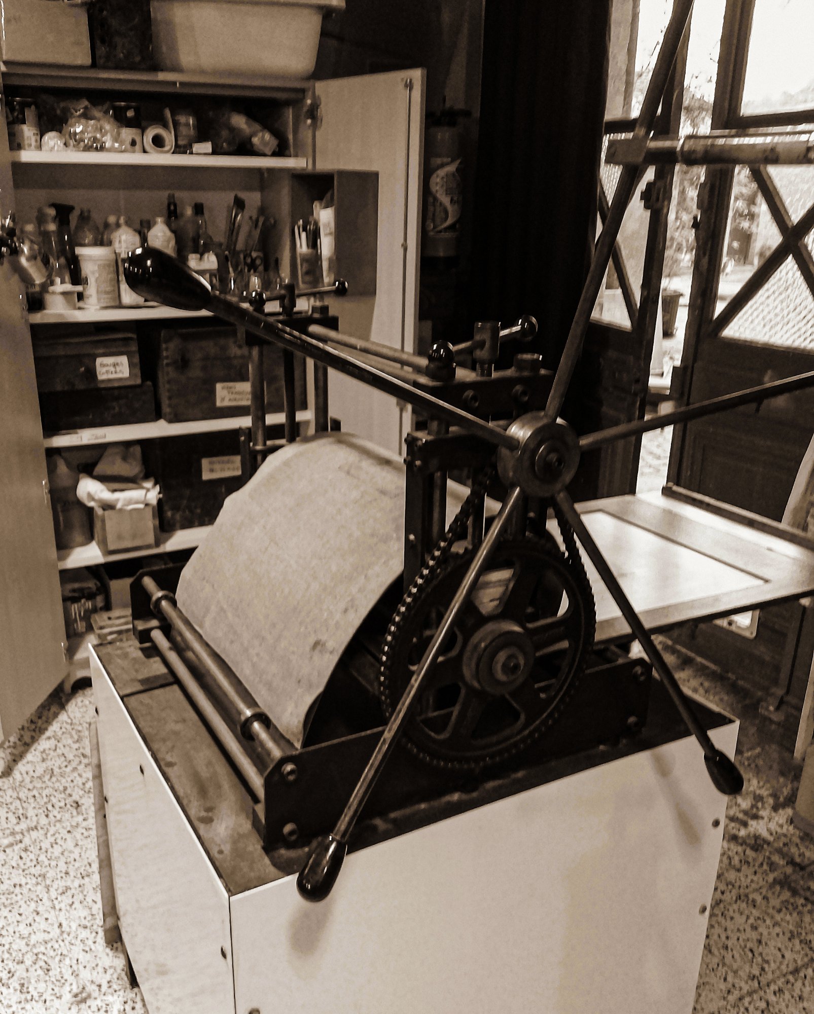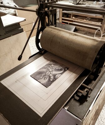L’association LE CAMION met à disposition son atelier de gravure avec son matériel. Cette atelier est une alternative proposée aux personnes ayant une pratique amateur ou expérimentée de la gravure mais qui n’ont pas d’atelier pour la mettre en œuvre. L’atelier possède deux presse. Une presse Ledeuil et une presse Polymetaal.