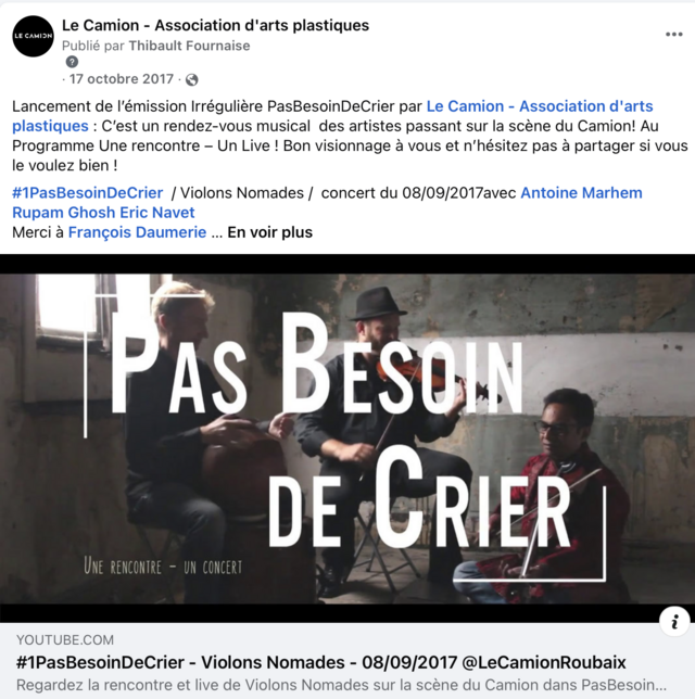 Pas besoin de crier mardi 4 février 2025 , par Maxime Vendredi 8 septembre 2017 de 19h00 à 21h00 Le camion 7 rue Archimède 59100 Roubaix