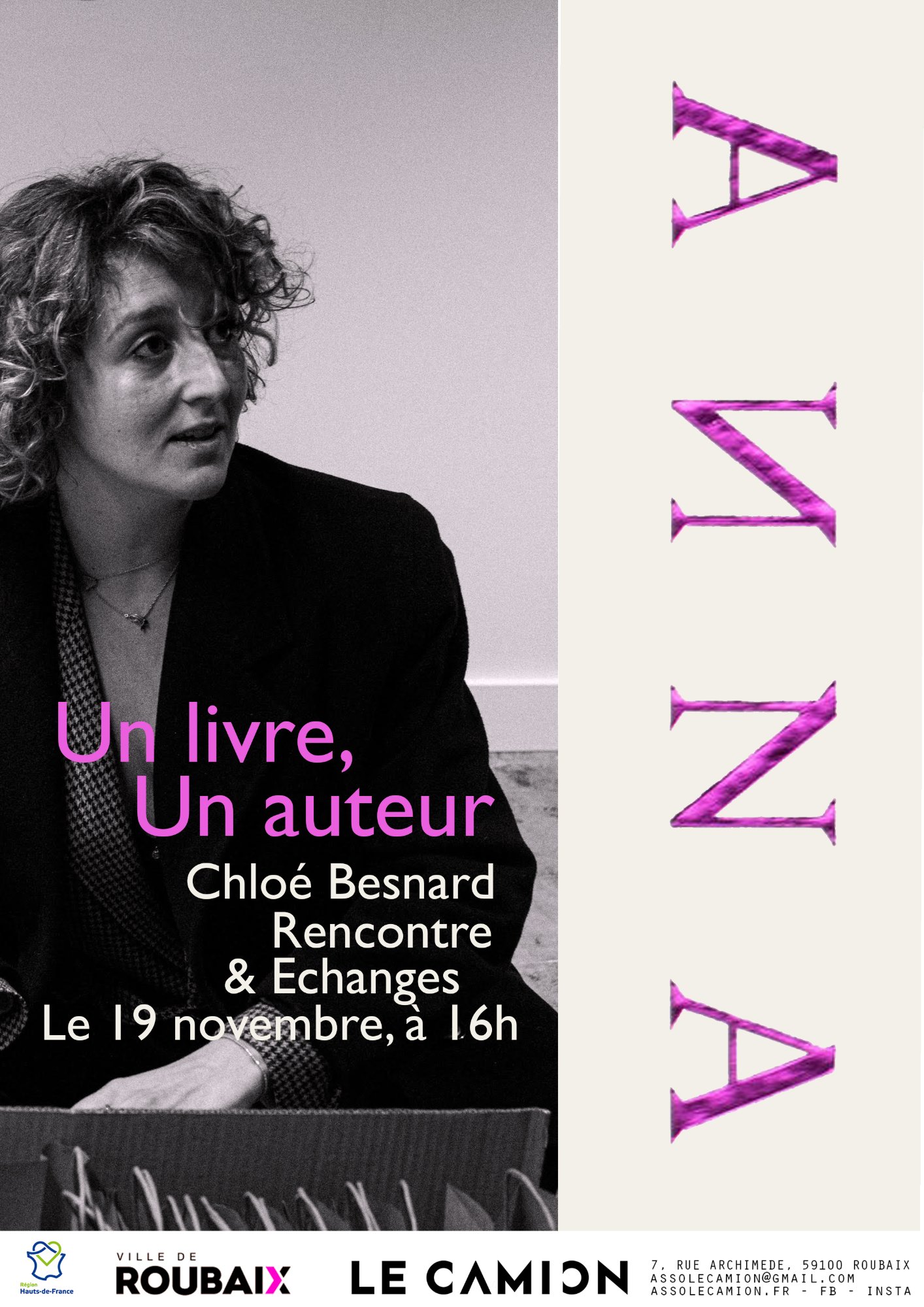Un livre un auteur Chloé Besnard mercredi 5 février 2025 , par Maxime Samedi 19 novembre 2022 de 16h00 à 21h00 Le Camion 7 rue Archimède 59100 Roubaix